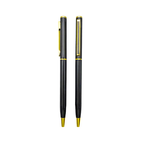 Elegante bolígrafo metálico de color negro con detalles dorados modelo Tourist.