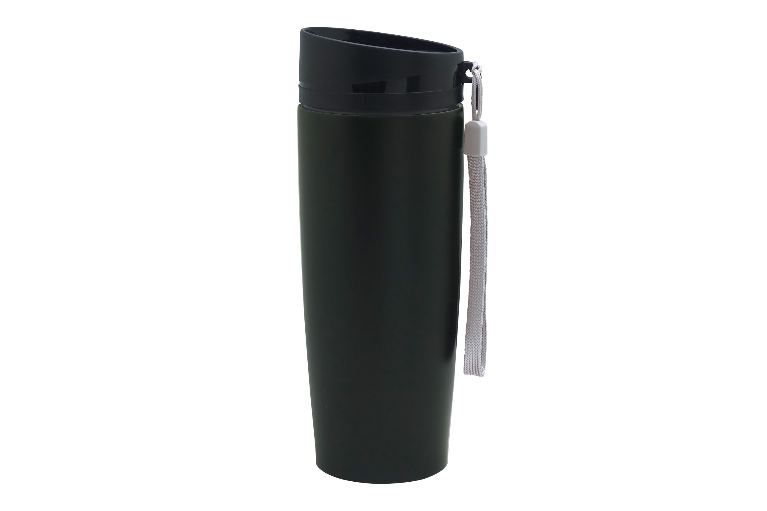 Ø 6 x 19,5 cm. Capacidad 350 ml. Acero inoxidable. Mug doble pared Interior acero 304 y exterior acero 201. Tapa a rosca, botón para abrir y cerrar. Lazo para sujetar en la muñeca. Base antideslizante. Mantiene las bebidas frías o calientes por más tiempo. Presentación en caja de regalo.