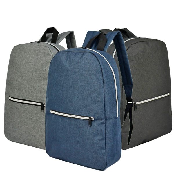 Mochila de poliéster 300D/PVC denim, modelo «SET». Capacidad 14.5 litros. Incluye compartimento principal + bolsillo delantero, completamente forrados en eco-cuero PU 210D. Correas ajustables.