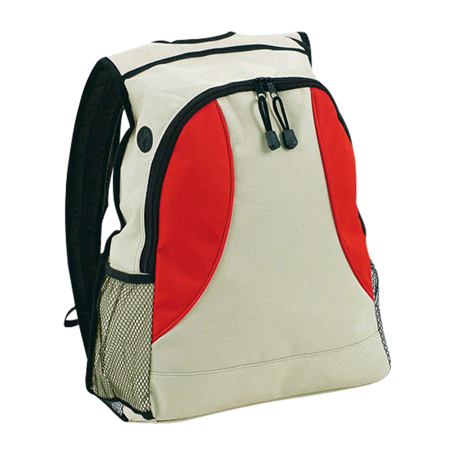 Mochila bicolor modelo «Zeus» en tela raquelada polyester 600D. Con cintas acolchadas y salida para auriculares.